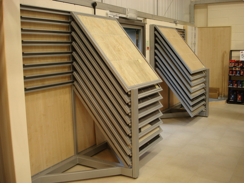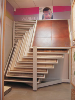 Vision's floor tile sliders are designed to show a large area of floor or large format tiles and allow the customer an opportunity to view the products close up. The floor tile display panels run on ball-bearing mounted nylon wheels for a smooth action.