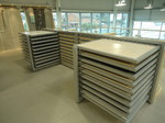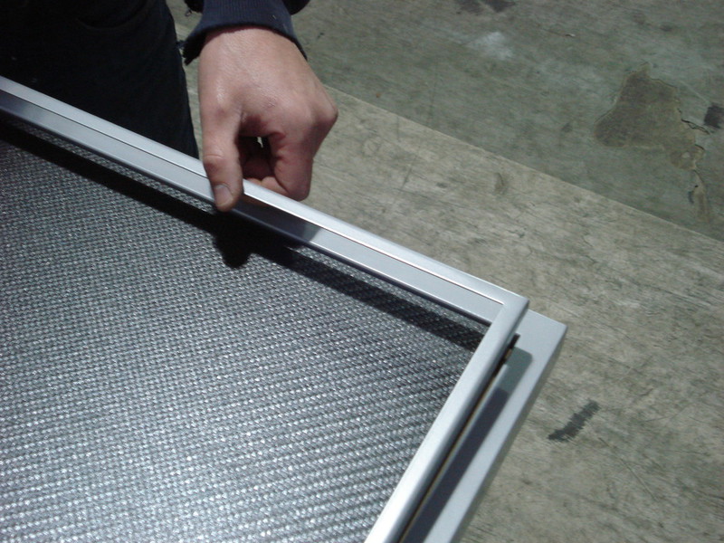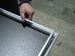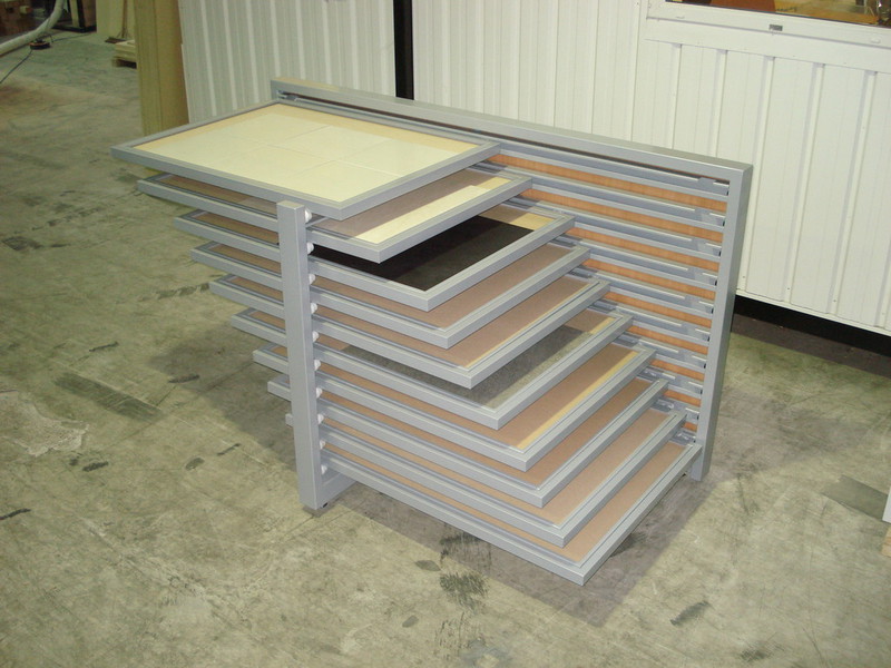 The display panels are supplied with a metal hook over trim to mask the cut edges of the tiles once merchandised.