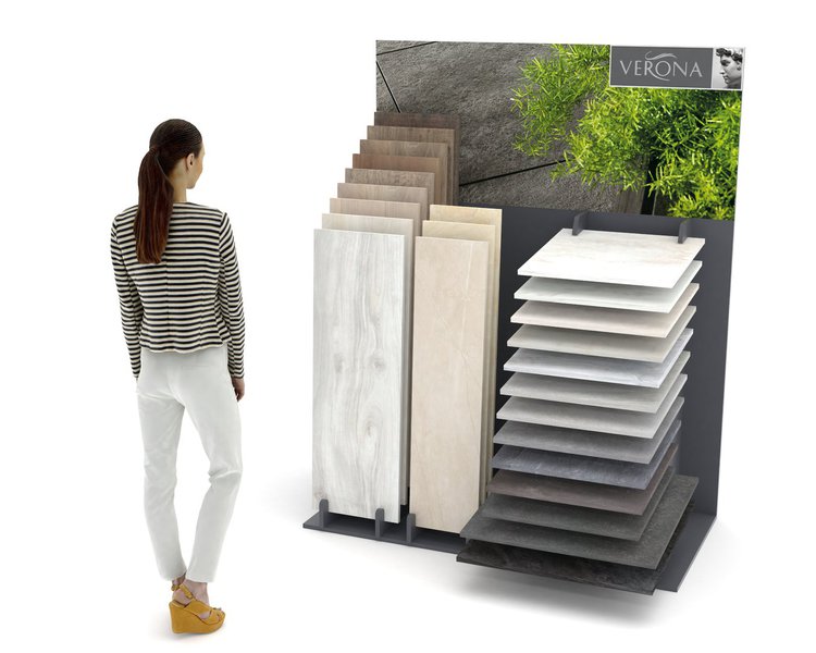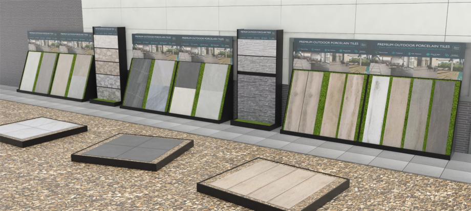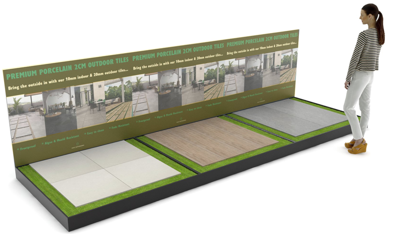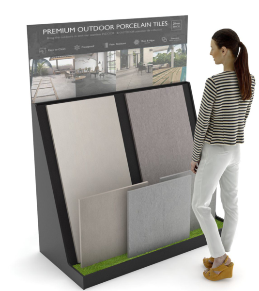 Due to the current popularity of 2cm tiles and the high demand for suitable displays, we have recently enlarged our range to show both 10mm/20mm porcelain tile ranges. The range includes displays designed for use both inside and outside of your showroom, manufactured using quality weather-proof materials, including full colour print POS where required.