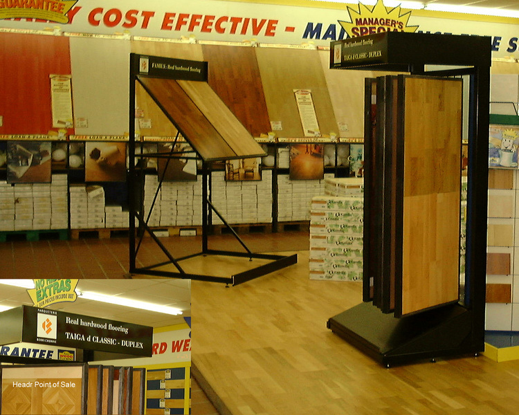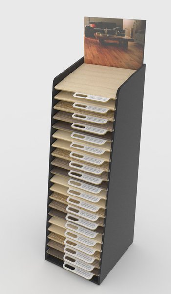 Vision design and manufacture many types of displays for laminate and luxury vinyl tile products, from simple handboards through to stock holding sloping racks. Contact our sales office about your requirements to see how we can help.