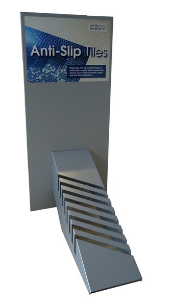 Vision folded sheet metal cradles are an alternative version of our popular metal laser cradles, used for displaying single tiles. This version is a simple folded steel option and can hold 10 x products up to 60 x 60 with ease. Whilst not as robust as our fully welded laser cradle displays these units provide a cost-effective option where price is important. Vision manufacture these displays on a made to order basis and can powder coat them to a colour of your choice.