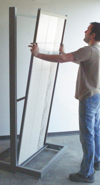 Our latest generation of modular roomsets are designed to have a contemporary look with a practical tiling method. These displays can be provided in a number of types (single sided, double sided, corner units) enabling you to install a varied layout in your showroom. We offer a fixed panel version which is simply tiled on the stand or a removable panel version, which allows the tile display panel to be pre-tiled and fitted using our unique tile panel carrier system.