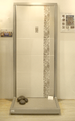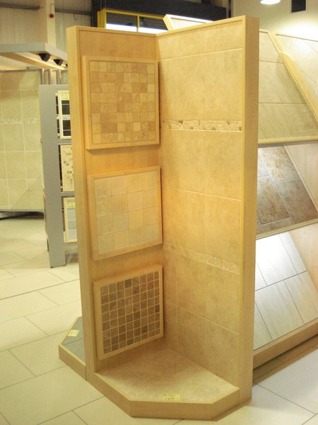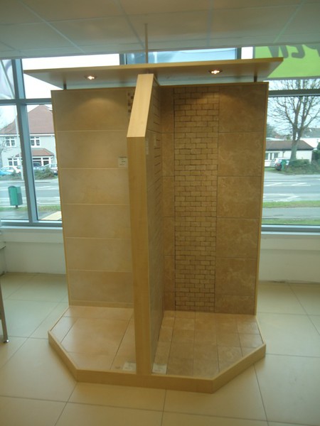These displays are designed and made to order and are constructed to suit your particular needs. Vision manufacture these displays with strong base plinths which are suitable for customers to stand on once tiled. The base plinths and back walls are all recessed for tiling and grouting into. The products can be removed time and again when new product ranges need to be shown.