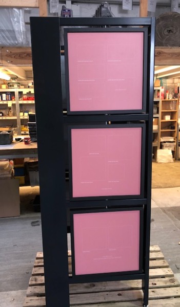 The displays are assembled using 4 x identical side frames which simply bolt together. This tried and tested method reduces warehouse storage space and keeps delivery costs to a minimum.