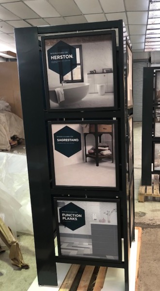 This display is ideal for showing large areas of stone, tile and flooring products with a grouted finish in a small showroom footprint.