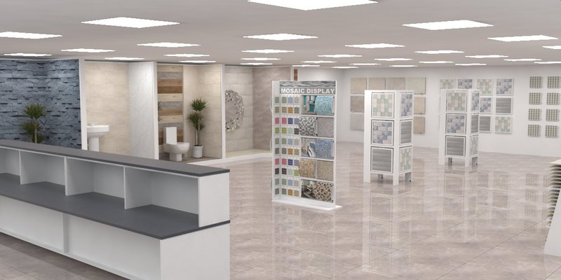 The Vision Design team are beavering away creating all of our display designs in 3D so that they can be placed into our various virtual showroom settings. Once this is complete we will upload many different veiws of our display equipment placed in a typical tile or flooring showroom setting, so our customers have the opportunity to see the appeal of many different displays in location.