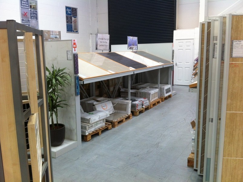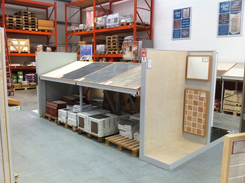 Vision designed and manufactured a unique sloping/pallet display racking system for the Winchester branch of London Tile Co. The racking was a bolt together system which displayed the pallets of stock underneath, fitted with grouted display panels on top.
