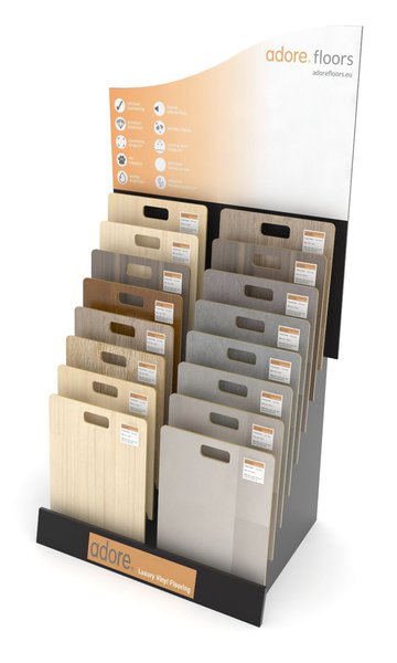 Vision have been working closely with Paul Brady, CEO of Adore Floors to create a purpose-designed cradle and backboard displays for the new range of Adore Floors LVT products, recently launched into the market.