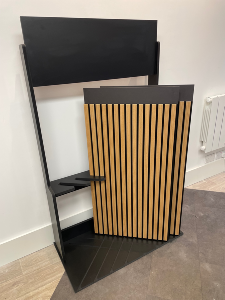 Vision was approached to design a display stand that showcased four of Deanta's new range of acoustic panels. They were easy to remove, lift and present to clients as is standard for Vision's