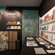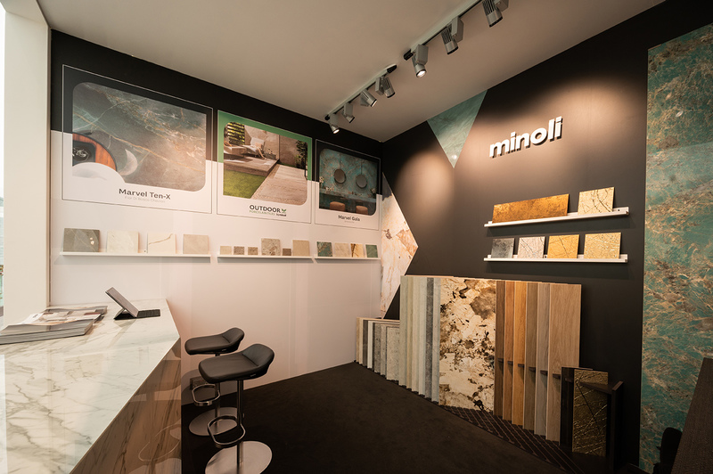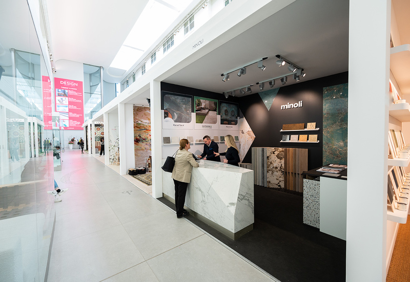 Minoli, a leading distributor of Italian porcelain tiles, commissioned Vision Display to create a set of custom-made units for their stand at London Design Week 2023.