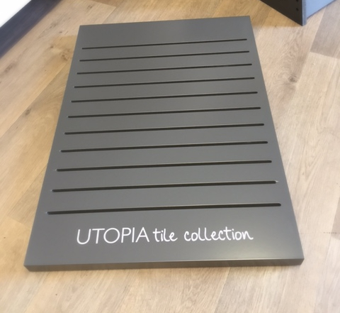 new tile range launch, all manufactured from thick mdf and spray finished to their chosen colour, including a fret-cut logo to add professional branding to the displays.