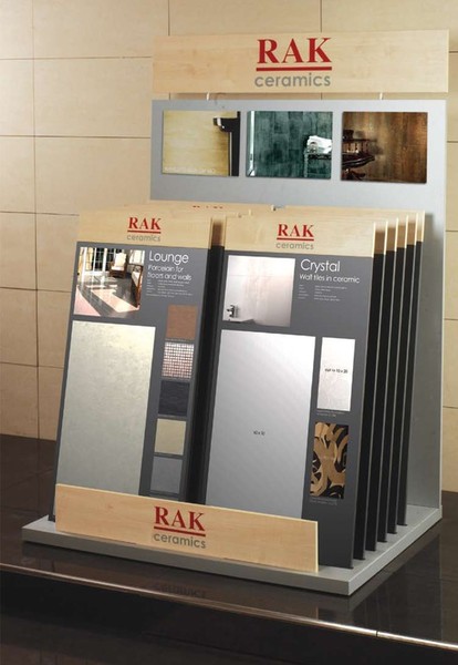Vision completed batches of 2 x displays products for RAK ceramics, officially the world's largest tile manufacturer. Vision have designed and manufactured a rotating tower and slotted base displays that have been installed by RAK's merchandisers. As part of the whole service, Vision have manufactured the displays, provided the POS and carried out the actual tile merchandising on all the display panels - providing RAK with a finished display solution. For further info on the complete range of Vision services, contact the sales office.