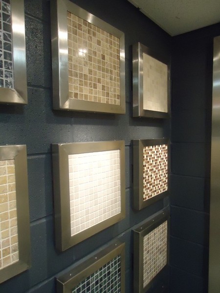 Vision manufactured some sets of beautiful brushed stainless steel wall hung display panels for one of our Yorkshire based customers to use in their stone showroom.